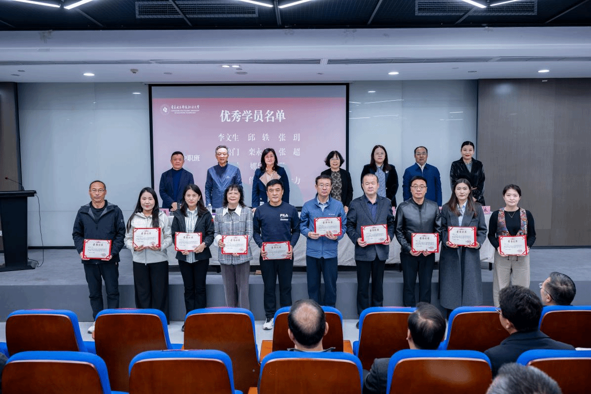 随后,项目承办学院——数字技术与设计学院院长谢永宣读了结业学员名单和优秀学员名单,并分批为学员代表及优秀学员颁发结业证书,鲜红的证书既是对学员本次研修的肯定,更是对未来职业教育征程的期许。