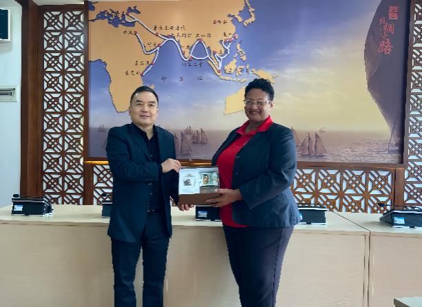 开班仪式上,校长聂强与Marlyn Rawlins女士互赠礼物。Marlyn Rawlins女士赠送给我校一幅以巴巴多斯特色飞鱼为主题的画作,展现当地独特文化;聂强回赠极具中国韵味的茶叶,寓意中巴职教交流如茶香般绵长深远。仪式期间,副校长幸昆仑还为巴巴多斯TVET Council的教育工作者们佩戴校牌并合影留念。