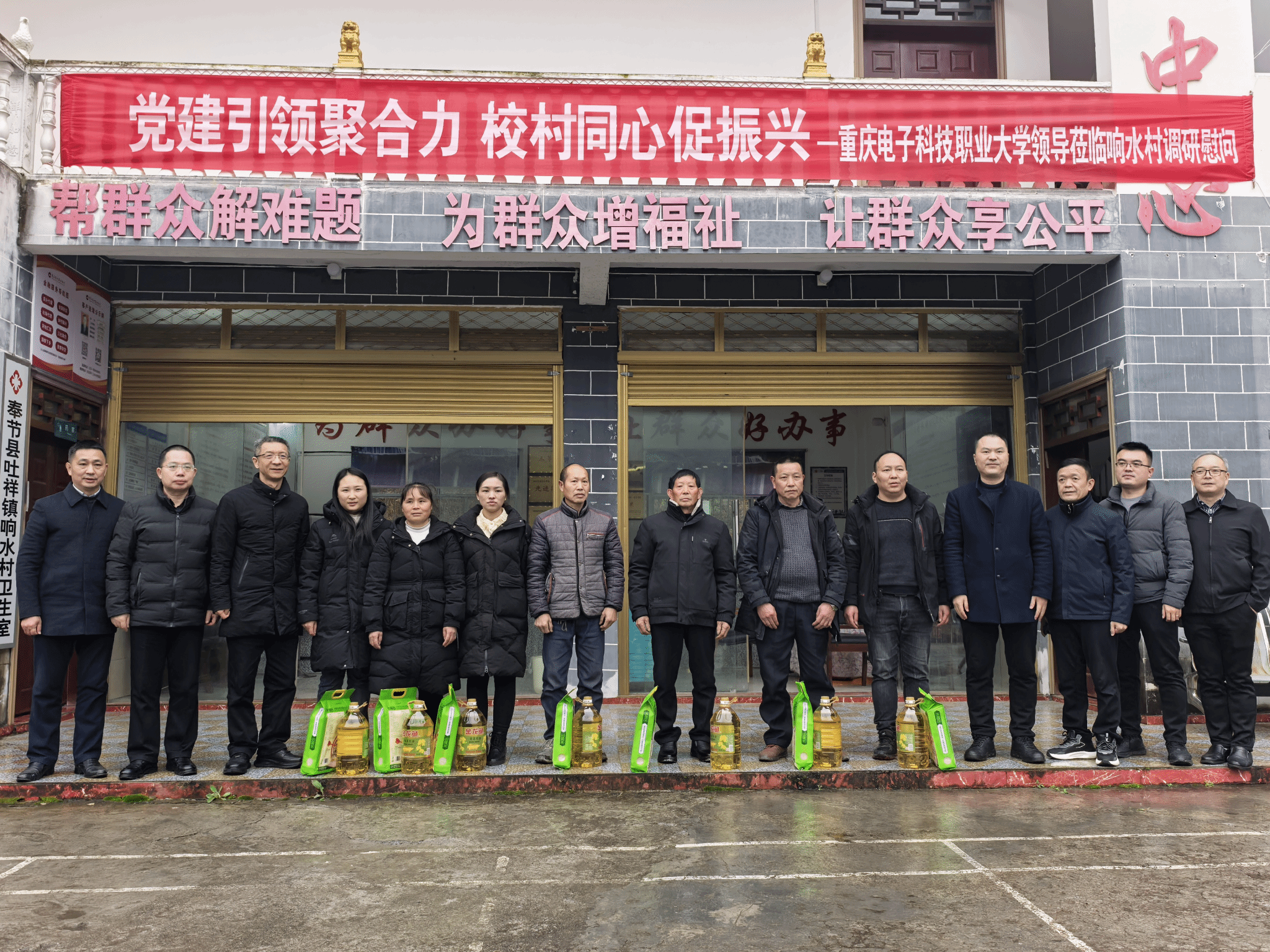 最后,张伟对学校驻村第一书记严世同、刘友庚、周向宇、陈兴国四位同志提出了三点殷切期望:一是胸怀“国之大者”,扛牢政治责任。 要深入学习党的二十大、二十届三中、四中全会关于乡村振兴的战略部署,以及习近平总书记视察重庆重要讲话重要指示精神。聚焦粮食安全和不发生规模性返贫的底线要求,将驻村工作融入市委关于建设“巴渝和美乡村”的总体布局。二是发挥“重电特色”,赋能乡村发展。 要依托学校在电子信息、物联网等领域的专业优势,推动“蓝色赋能”科技资源与乡村产业升级需求精准对接。发挥“红色铸魂”育人和“行走的思政课”经验,协助建强基层党组织、培育文明乡风,搭建校地深度合作的桥梁。三是恪守廉洁本色,锤炼过硬作风。 要带头严格执行中央八项规定精神及廉洁履职各项规定,结合学习教育,力戒形式主义、官僚主义。始终坚持“民生为大”,深入田间地头,用心解决群众急难愁盼,以清正廉洁、务实担当的作风,树立高校干部服务基层、服务群众的良好形象。