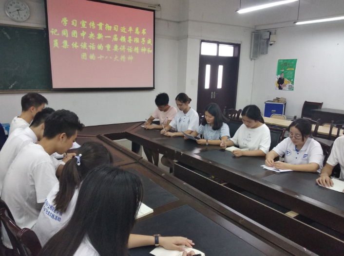 财经管理学院展开了学习“宣传贯彻习近平总书记同团中央新一届领导班子成员集体谈话时的重要讲话精神和团的十八大精神”的会议。会议强调了“深化共青团改革、落实从严治团”,并提出作为青年人的学生们,要牢记习近平总书记的殷殷嘱托,自觉把个人奋斗融入党和人民的共同奋斗中,敢于有梦、敢于追梦、勇于圆梦。