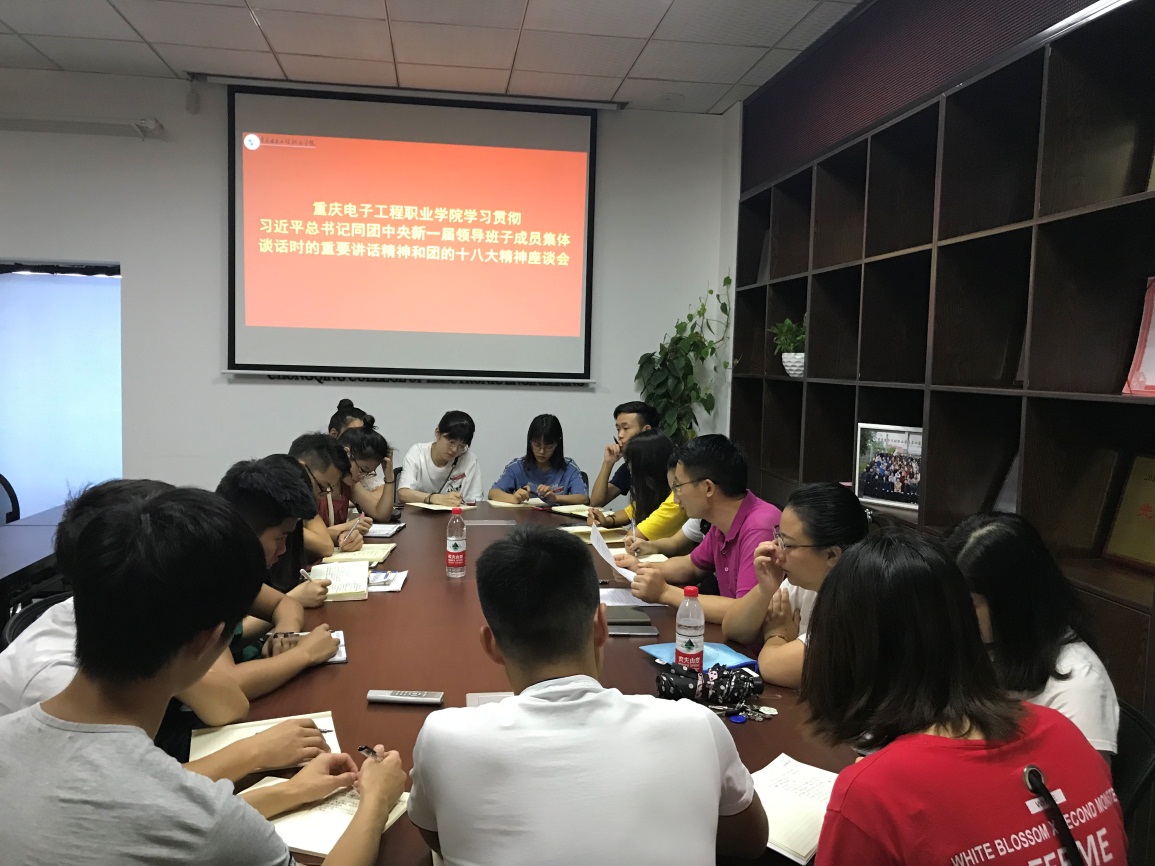 为深刻学习宣传贯彻“习近平总书记同团中央新一届领导班子成员集体谈话时的重要讲话精神和团十八大精神”,2018年7月10日上午9时,我校团委组织主要团学干部在7201会议室进行集中学习讨论。校团委袁玉刚书记,校团委全体老师、二级学院团总支书记和主要学生干部共计20余人参与此次座谈会。