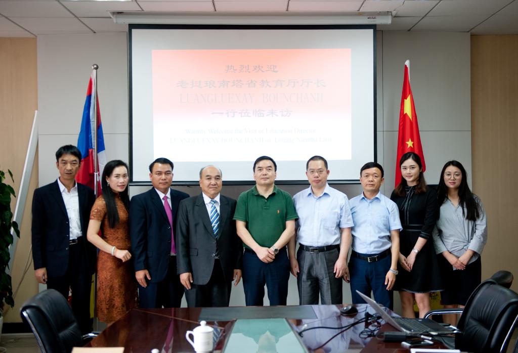 2018年6月4日,老挝琅南塔省教育厅厅长本江·栾乐赛、琅南塔省教育厅厅长秘书松奇·普塔翁一行来访。校长聂强、副校长龚小勇以及国际交流与合作发展处处长莫绍强接待来宾,双方围绕“一带一路”倡议展开了合作洽谈。