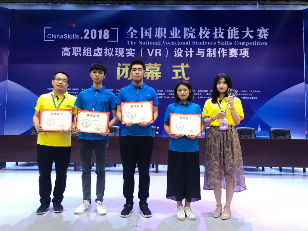 5月29日-5月30日,全国职业院校技能大赛“虚拟现实(VR)设计与制作”赛项在福建船政交通职业学院举行,由刘明、赵鹏举、晏锦老师指导的徐泽申(工业机器人技术15级)、张春花(数字媒体应用技术17级)和李洋(数字媒体应用技术17级)组成我校参赛队, 经过激烈的角逐获得一等奖,实现国赛一等奖蝉联梦想!