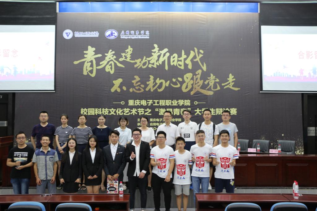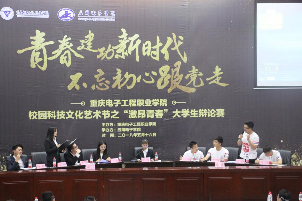 为丰富学生课余生活,提高大学生良性竞争意识。5月16日,应用电子学院在南校区博远厅成功举办了校园科技文化艺术节之“激昂青春”大学生辩论赛的总决赛。经过一个月的层层选拔,社会主义青年团和煽煽来遅队在十四支队伍中脱颖而出,进行最终角逐。两队以“世界文化遗产的开发比保护重要”和“世界文化遗产的保护比开发重要”展开辩论。本次活动由学院学管科科长、团总支书记张力老师及各年级辅导员担任评委。