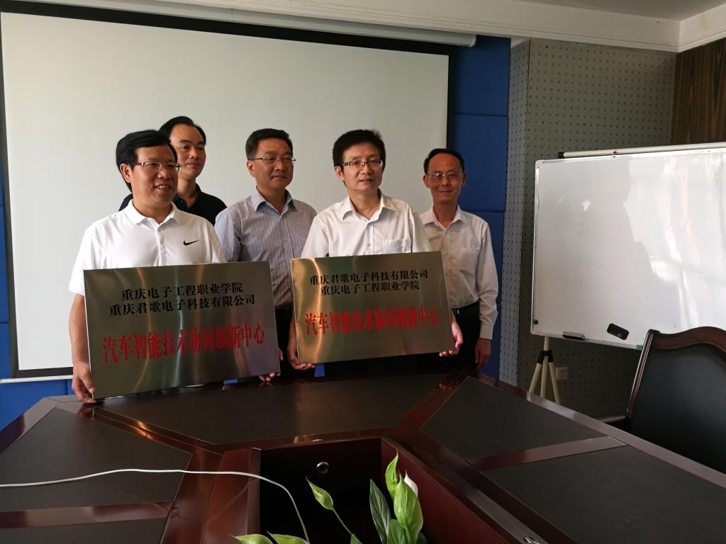 近日,我校和重庆君歌电子科技有限公司联合成立了汽车智能技术协同创新中心。2018年5月16日上午,副校长刘成俊教授带领科研与发展规划处处长彭海深教授、应用电子学院副院长王正勇教授、应用电子学院电子技术系主任林涛副教授赴重庆君歌电子科技有限公司总部参加协议签署及揭牌仪式。
