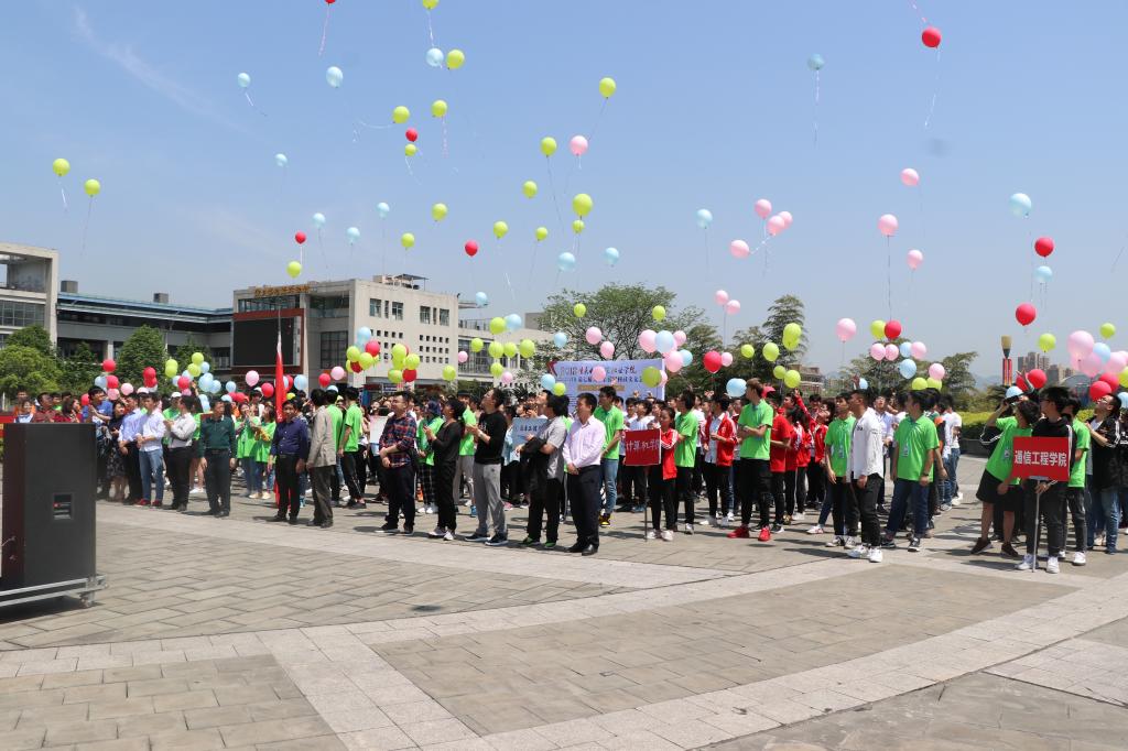 2018年4月3日,由党委学生工作部(校团委)主办的第七届大学生校园科技文化艺术节暨环校园跑活动在学子广场顺利举行。校党委副书记唐玉林,党委学生工作部部长何光明,党委学生工作部副部长蒋斌,党委学生工作部副部长、校团委书记钟佐彬,通信工程学院党总支书记黄正伟,软件学院党总支书记王文,汽车工程学院党总支书记张红斌,传媒艺术学院党总支副书记袁勇,管理学院党总支副书记廖坤科,各二级学院团总支书记及学生代表共200余人参加了开幕式。