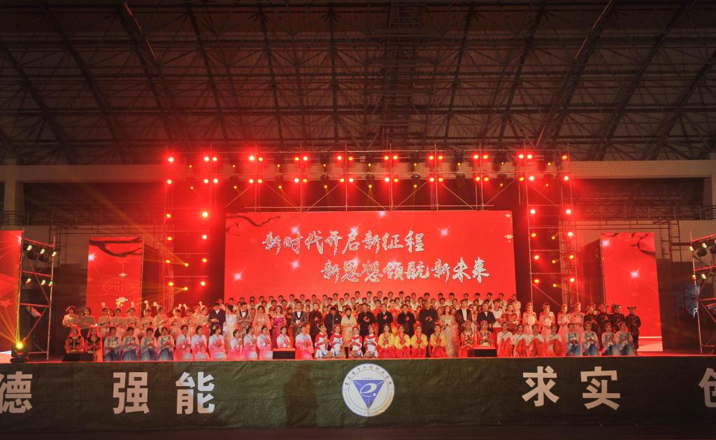 12月27日19时,我校2018年“新时代开启新征程,新思想领航新未来”新年晚会在奕晖运动中心隆重举行。出席晚会的领导有学校聂强校长,校党委唐玉林副书记,学校王平副校长,校纪委陈丽书记,学校谢义华副校长,学校冉学农副校长,学校原苏小柱副校长,校党委委员、党委宣传部疏勤部长。参加本次晚会的还有学校各职能部门、各二级学院的领导和师生共计五千余人。