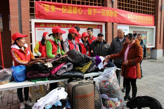 不久便有居民们陆陆续续的前来捐赠衣物,有的衣物较多而沉重,但居民们依旧不惧寒冷,陆续前往捐赠点,让志愿者们感受到了居民们带来的热心温度。