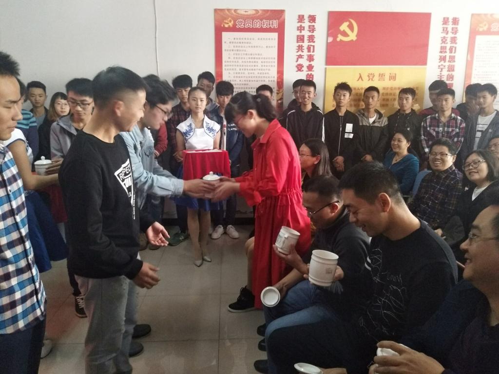 随后,孙红老师宣读了机电学院技能创新团队名单。老师和学生相继宣誓,学生敬茶给自己的老师,老师赠予学生《弟子规》。老师们承诺“喻诸德、授全艺”,弟子们承诺将努力学习,刻苦专研,将所学运用到实践,为重电发展和社会发展贡献自己的力量。