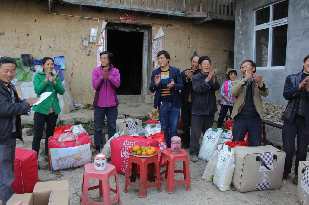 随后,聂强校长代表全校师生为结对帮扶贫困户赠送大米、食用油、冬被及白糖等生活用品,送温暖,表真情。