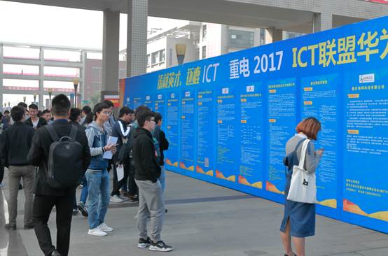 随后,33家企业代表在学校南区2栋平层举行了2017年ICT人才联盟双选会。本次双选会,33家企业共提供优质岗位300余个,涵盖通讯、IT、软件和物联网等专业。现场双选会,气氛热烈,每个用人单位的展台前聚集了急切关注的毕业生,他们积极给自己心仪的企业投递简历,用人单位也向自己心仪的学子抛出了橄榄枝,为企业揽才储才。