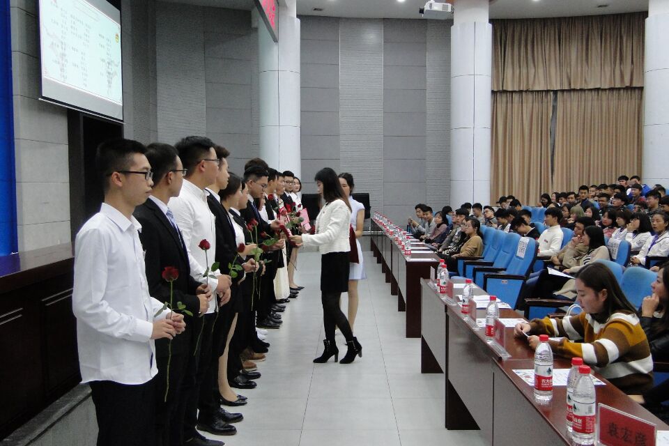 10月26日下午6点整,我校计算机学院在南校区博远厅召开了“第十届团总支·学生会换届暨表彰大会”。计算机学院党总支刘宏宇副书记、团总支书记范可佳老师、辅导员任乐老师、黄婧雯老师、朱媛媛老师、黎娅老师、丁锦箫老师、李明蔚老师、蒋丽老师、郎捷老师、范伊然老师、周旭君老师,班主任袁宏彦老师,第十一届团总支·学生会全体成员以及各二级学院主席团共300余人同出席了本次大会。本次大会旨在对上一届优秀学生会成员进行表彰,肯定其贡献与成绩,激励新一届学生干部秉承优良传统,不断开拓创新,锐意进取。