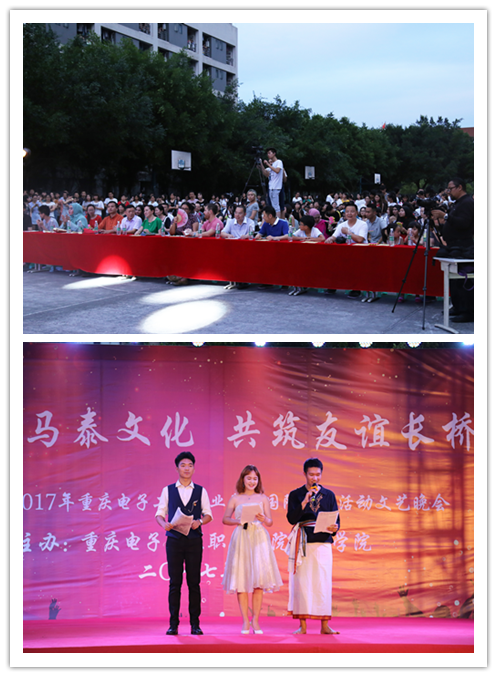 2017年7月5日晚,由重庆电子工程职业学院国际学院和党委学工部共同举办的我校首届中外学生国际交流活动文艺晚会在南校区篮球场举行。党委副书记唐玉林、副校长龚小勇,党委组织统战部部长刘洪光、国际学院党总支书记唐莉、国际学院院长莫绍强、马来西亚博特拉大学(UPM)MOHD HAIRUL ANUAR BIN RAZAK(安华)、马来西亚多媒体大学RAZEELAN BIN SAAIDAN KADRI,以及部分二级学院党总支书记、美中志愿者项目的外籍教师、马来西亚留学生代表、泰国留学生代表和各二级学院师生代表出席了此次活动。三名主持人分别以汉语、英语和马来语三种语言进行主持。