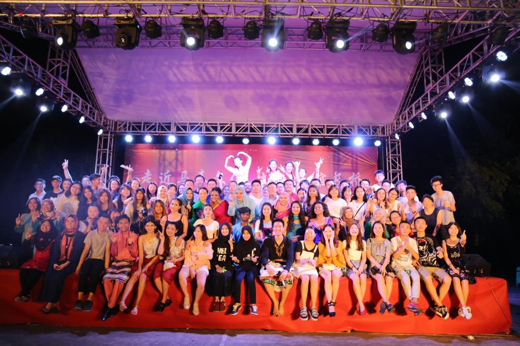 最后,在马来西亚师生和学生志愿者表演的群舞《Poco Poco》欢快的节奏下,全场激情四射、活力十足,充满动感的音乐、酣畅淋漓的动作,把全场气氛引向高潮,台上泰国和马来西亚的留学生们索性走下舞台,来到观众席,邀请现场观众一起加入他们的欢乐之中。