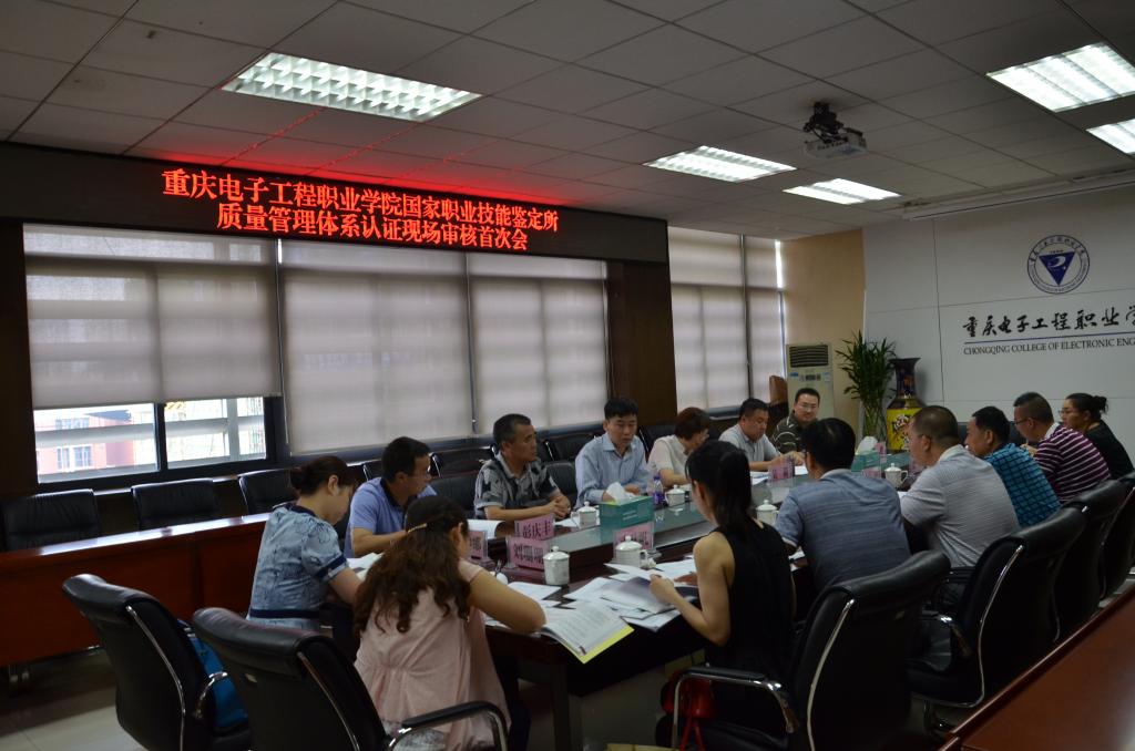 在质量管理体系现场审核首次会上,我校国家职业技能鉴定所分管副校长龚小勇首先简要介绍了我校是基本情况和鉴定所的发展情况,并表示,我校国家职业技能鉴定工作开展以来,得到了国家、省市相关单位的大力支持,工作水平不断提高,在深化职业资格制度改革、健全技能人才多元评价体系的大背景下,对当前的技能鉴定工作提出了更高的要求,希望此次参与审核认证的专家多提宝贵意见,推动我校国家职业技能鉴定工作进一步发展。然后,我校国家职业技能鉴定所所长刘松就质量管理体系建设和试运行情况作了汇报。尔后,专家组组长李健说明认证审核的目的、范围、方法和程序;并介绍认证审核员分组分工、认证审核安排及相关要求。重庆市人力资源和社会保障局职业技能鉴定指导中心罗晓欧书记对本次质量管理体系现场认证审核的重要性做了说明,并代表市职业技能鉴定指导中心对学校国家职业技能鉴定所的工作给予大力支持。最后,国家人力资源和社会保障部职业技能鉴定中心质量督导办朱兵就现场审核工作进行了强调。