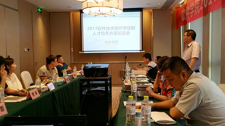 因合作企业较多、企业星空(中国)定位不同,软件技术现代学徒制培养模式的实施较为复杂。在6月30日下午,教务处叶勇副处长首先就培养方案的公共课和专业课的整体设置给出了指导意见,强调在提高学生专业技能的同时也要保证学生基本素质的培养。随后,软件学院软件技术教研室主任项刚老师介绍了现代学徒制星空(中国)方案初稿,李林副院长就星空(中国)方案初稿阐述了我院现代学徒制培养模式的构想,取得了合作企业的一致认同。经过校内外专家一下午的深入研讨,确定了现代学徒制星空(中国)方案中的工学交替的模式以及工学交替的时间节点。