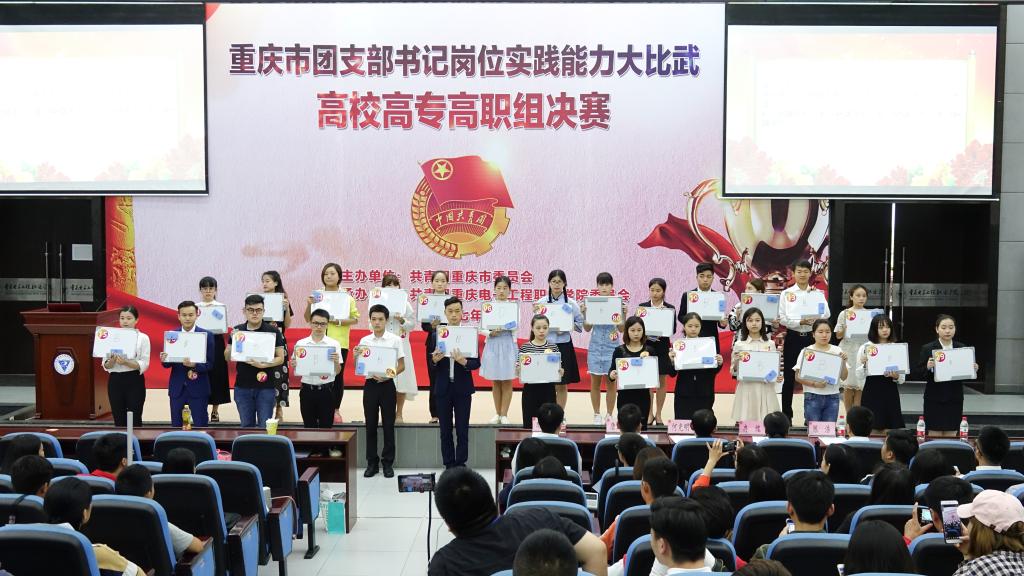 为深入贯彻中央和市委的群团工作会议精神,进一步增强基层团组织的吸引力、凝聚力、战斗力,2017年6月15日上午9点,重庆市团支部书记岗位实践能力大比武高专高职组决赛在重庆电子工程职业学院博远厅顺利举行。共青团重庆市委廖传锦副书记,团市委周川副部长,校党委唐玉林副书记,党委学生工作部何光明部长,党委宣传部冉槐部长,团市委组织部陈浩老师莅临比赛现场,27所高专高职学校的领导、老师出席并担任此次比赛的评委。此外,校学生会、校青年志愿服务总队、各二级学院团支书代表共计三百余人应邀观看比赛,一万余名青年团员通过网络直播观看了比赛。