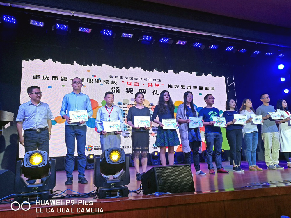 颁奖典礼于6月15日下午在重庆工商职业学院华岩校区举行,由刘晓东副院长、袁勇副书记、尹敬齐、左小强、罗坚教师分别带领获奖同学参与颁奖典礼。此次作品联展共包括影视、动画、环境艺术设计、摄影等9大类,来自全市12所高职院校的上千名学生,共带来527件作品参展。我院师生踊跃参与,参赛作品共计70余件,受到组委会高度赞扬和肯定,重庆职业学会传媒艺术专委会授予我院优秀组织奖。