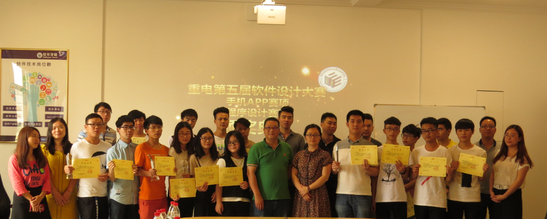 为进一步加强学校教学质量工程建设,提高学生的创造力及运用计算机技术解决实际问题的综合能力,培养学生的创新思维与合作精神,激发广大同学学习软件设计的热情与兴趣,2017年5月12日至6月10日,软件学院面向全校学生举办了重庆电子工程职业学院第五届软件设计大赛。据悉,大赛分两个赛项:手机APP赛项和程序设计赛项。此次大赛是由软件学院主办,千贝软件工作室、软件学院学生会、学生团体联合会千贝软件社会承办。根据赛程安排,于2017年6月12日中午12点30分在4505会议室进行颁奖典礼。最终,手机APP赛项由于子豪同学的作品《重电教务系统APP》摘得特等奖,隋新颖的《网罗校园APP设计》及常映秋小组的《邓妹妹失物招领微信小程序》作品分获一等奖;程序设计赛项由赵朝权同学夺得特等奖,周念及龚旋祺分获一等奖。出席颁奖典礼的有软件学院曾晓红副院长,软件学院李林副院长,学管科万鹏科长,千贝软件工作室指导老师朱堂勋老师,以及软件学院的各辅导员。