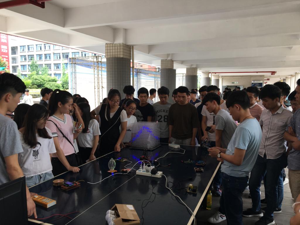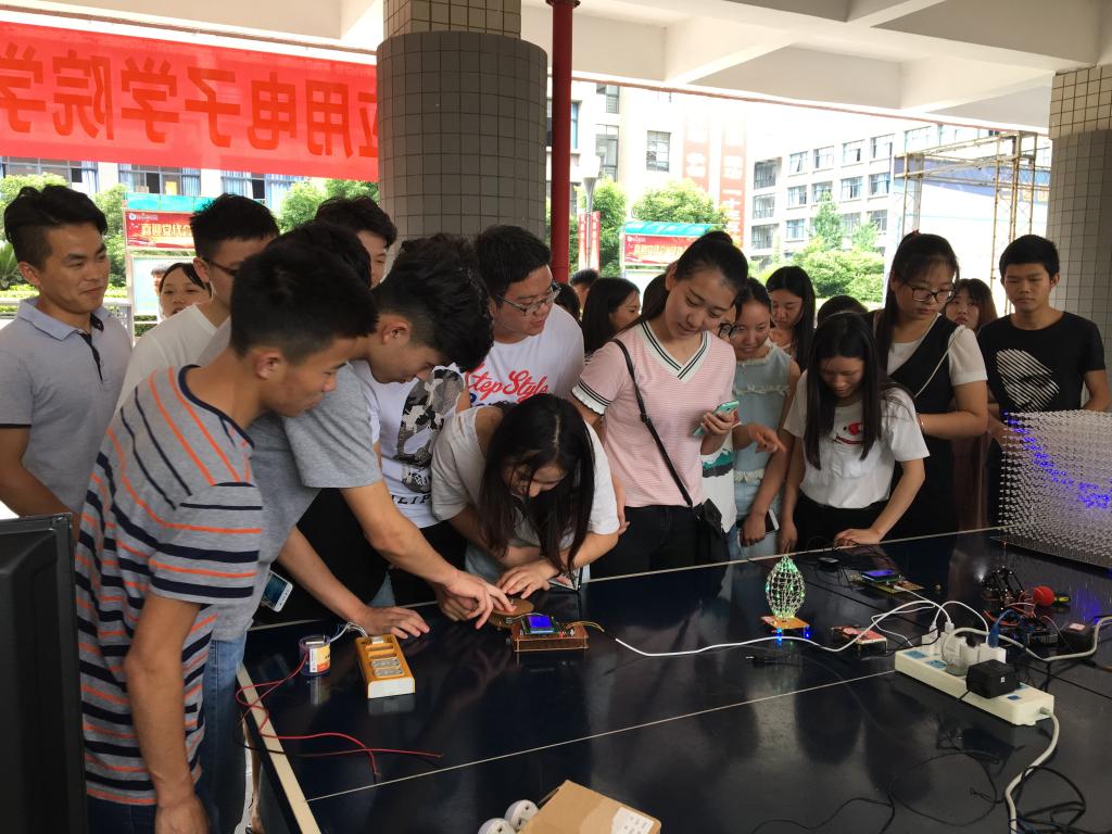 “应用电子学院学生创新创业优秀作品展”面向全校师生开放,在展示期间,全校师生参观踊跃,对展出作品表示了极大的关心。