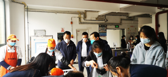 食堂叔叔阿姨,忙个不停,只为能快一点,再快一点,让我们的学生早点能吃上一顿热饭。一时间工作量陡增,送餐的干部志愿者迅速加入,恨不得能手脚并用,让更多的同学早点吃上饭。