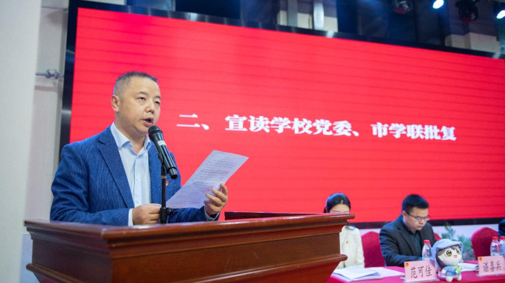 10月29日,第一次全体会议在庄严的国歌声中拉开帷幕。党委委员、副校长、党委组织部部长刘洪光,重庆市学生联合会驻会执行主席柯思懿,分别宣读学校党委、市学联关于同意我校召开学代会的批复。随后党委副书记龚小勇对本次会议致开幕辞。他对学校团学工作给予肯定,并对学生代表和各级学生会组织提出三点希望:一是坚定理想信念,在深学笃用习近平新时代中国特色社会主义思想上下功夫;二是加强学生会建设,在高效履职尽责上下功夫;三是坚持党的领导,在不断开创团学工作新局面上下功夫。最后,校学生会执行主席王小宇同学代表第十五届学生会作《重庆市电子工程职业学院第十五届学生会工作报告》,回顾总结了这一年来重庆电子工程职业学院学生会在思想引领、队伍建设、校园文化、志愿服务等各方面取得的成绩,并对下一阶段学生会工作予以展望。校学生会主席团成员钟晨阳作《重庆电子工程职业学院学生会章程(修正案)》的说明。