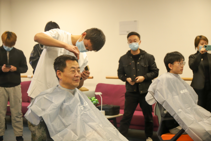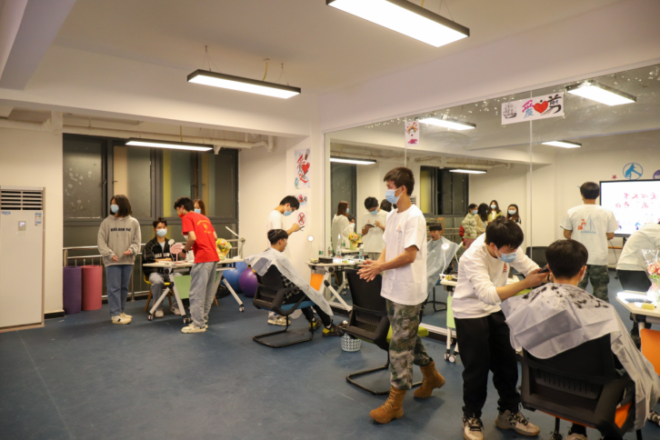 活动开设8个理发岗位,5个修眉岗位。活动开始后,前来理发的人员络绎不绝,排起了长队,不仅有本楼栋的同学,也有其他楼栋的同学,还有学校的清洁阿姨。同学们、清洁阿姨理发后都纷纷称赞理发的志愿者技术高超,表示非常满意。