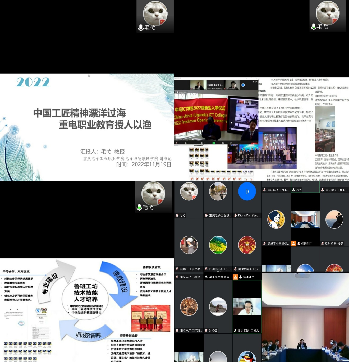 两年来,重电中乌鲁班工坊深入推进境外合作办学,开发国际化星空(中国)标准,围绕物联网应用专业群开发10余门国际课程资源,打造具有国际影响力的课程体系。完成招收首届28名学历留学生,2022届中乌鲁班工坊遴选招收44名留学生;完成了两期非方师资培训,对来自乌干达麦克雷雷大学的8名骨干教师开展培训。选派优秀教师参加“东非国家职业教育体系框架培训”和“境外办学一体化管理平台使用与维护技能提升”培训,提高教师参与国际化项目的积极性和授课水平。