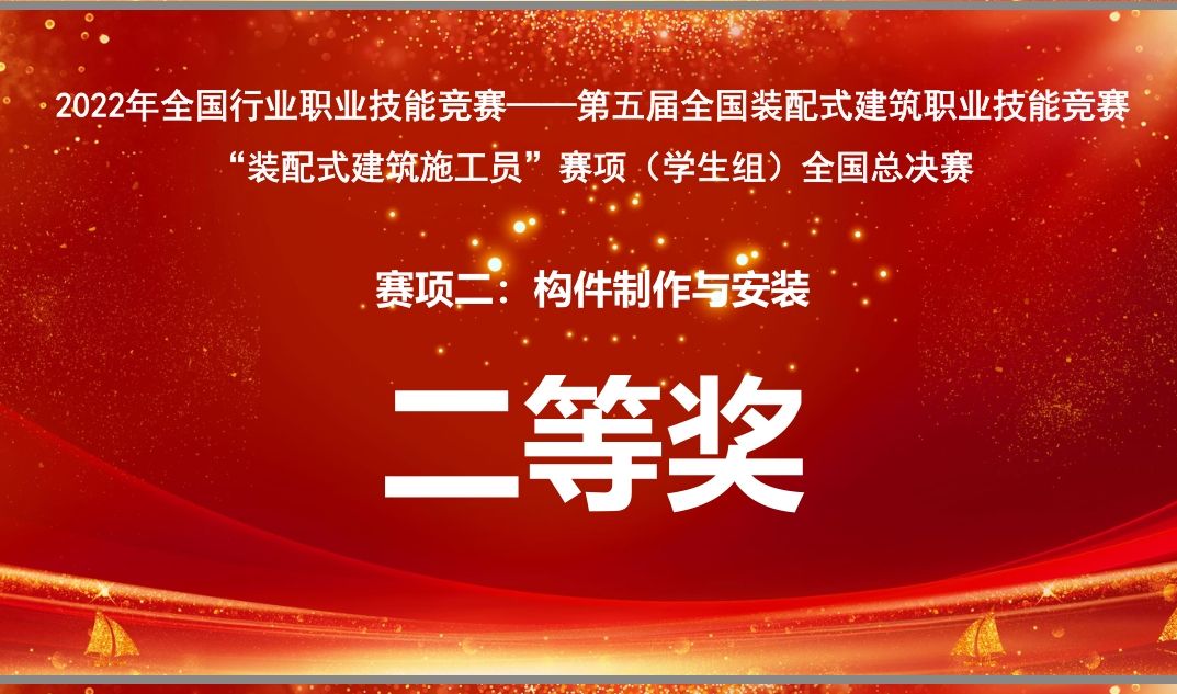 2022年11月27日,住房和城乡建设部人事司为指导单位,中国就业培训技术指导中心为主办单位、河南交通职业承办全国行业职业技能竞赛——第五届全国装配式建筑职业技能竞赛“装配式建筑施工员”赛项(学生组)全国总决赛,因疫情影响,采用线上竞赛形式开展。其中 “构件制作与安装” 赛项共有来自全国高校185支代表队的185名学生参加决赛,在竞赛考核平台上完成模具准备、混凝土浇筑、构件吊装和构件灌浆等四项任务。我校学生傅星雨同学在“构件制作与安装”赛项与全国本科、专科学生同台竞技,最终荣获全国二等奖,在重庆四只代表队中为最优成绩。
