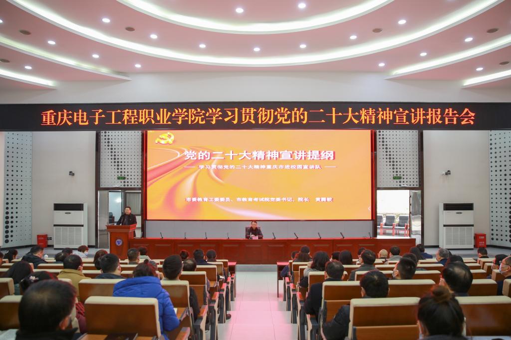 2月24日,学校在博远厅召开学习贯彻党的二十大精神“进校园”宣讲报告会。为深入学习贯彻党的二十大精神,按照市委教育工委统一安排部署,市委教育工委“进校园”宣讲队成员、市委教育工委委员、市教育考试院书记、院长黄腾蛟来校作党的二十大精神宣讲报告。在家校领导、处科级干部(含组织员、监察员)、全体辅导员、马克思主义学院教师、学生代表共计280余人参加宣讲会。副校长冉学农主持。