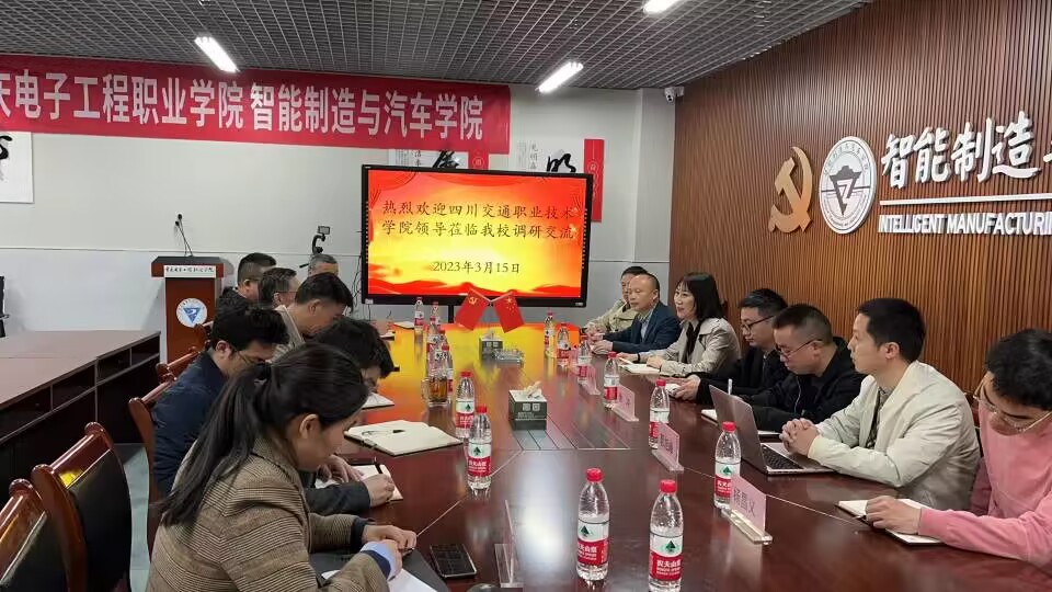 3月15日上午,四川交通职业技术学院副院长杨桦一行6人到访我校智能制造与汽车学院考察交流。我校副校长刘成俊、我校智能制造与汽车学院院长叶勇、副院长王勇以及机电工程专业教师代表参加了座谈会。