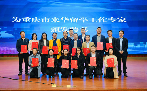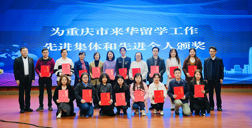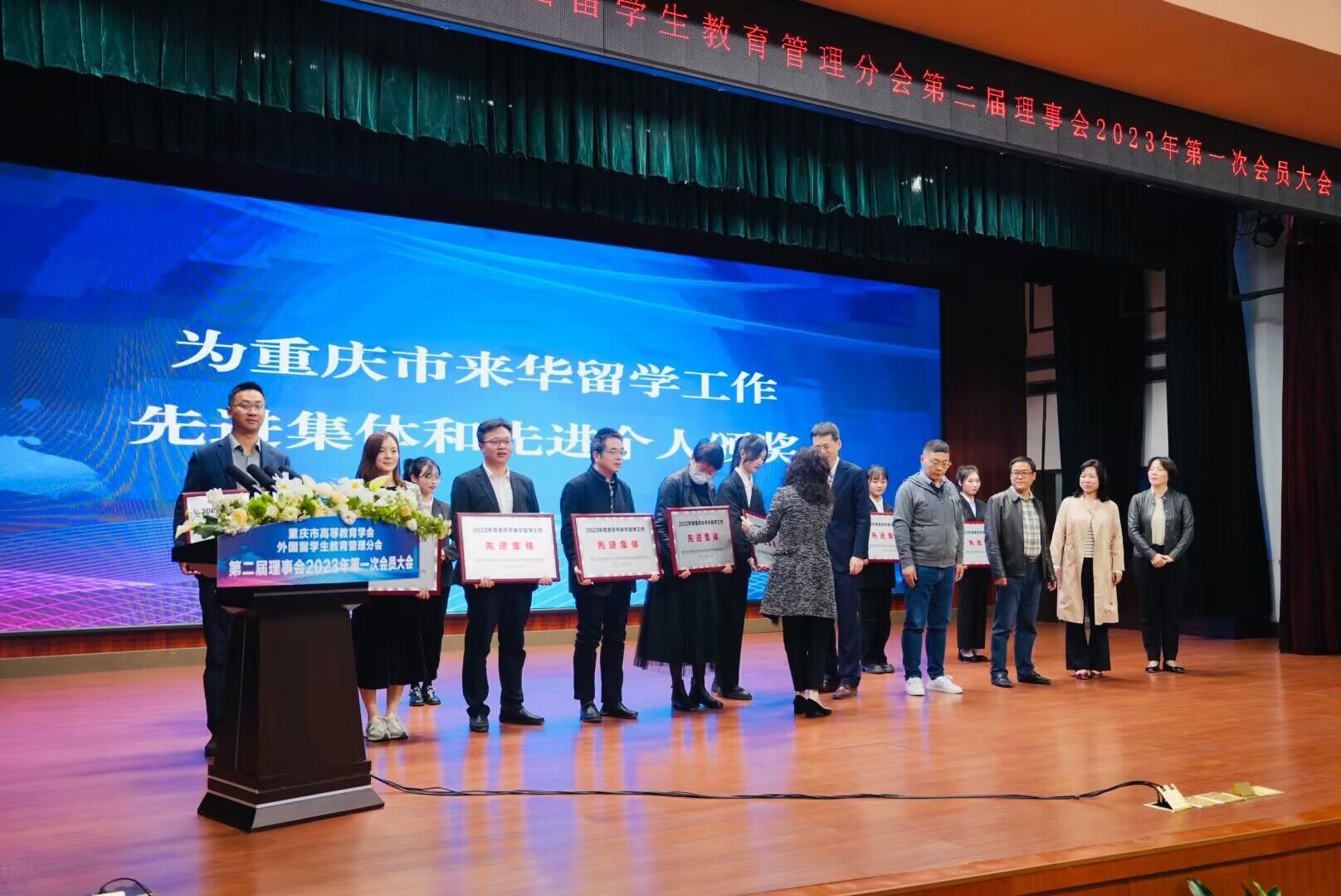 会议宣读了《关于表彰2022年重庆市来华留学工作先进集体和先进个人的决定》《关于聘用重庆市来华留学工作专家的决定》,我校国际交流与合作发展处处长刘宏宇、副处长刘影、通识教育与国际学院副院长张华敏被聘为重庆市来华留学工作专家;国际交流与合作发展处国际科负责人覃乔亦、国际科留学生管理服务人员单璐璐被评为重庆市来华留学工作先进个人。