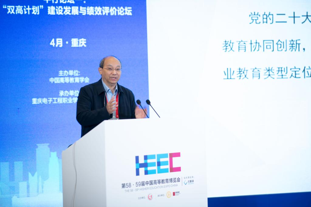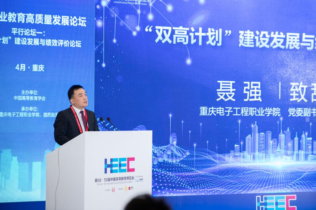 2023年4月8日,由中国高等教育学会举办、重庆市教育委员会指导、重庆电子工程职业学院承办的“双高计划”建设发展与绩效评价论坛在重庆国际博览中心顺利召开。作为第58·59届中国高等教育博览会主论坛“现代职业教育高质量发展”的平行论坛之一,大会聚焦“双高计划”建设与绩效评价的逻辑解构和现状分析、下一轮“双高计划”思考等内容,分为权威专家主旨报告和“双高计划”建设经验交流两个阶段进行,分别由校党委副书记龚小勇、双高办常务副主任代才莉主持。