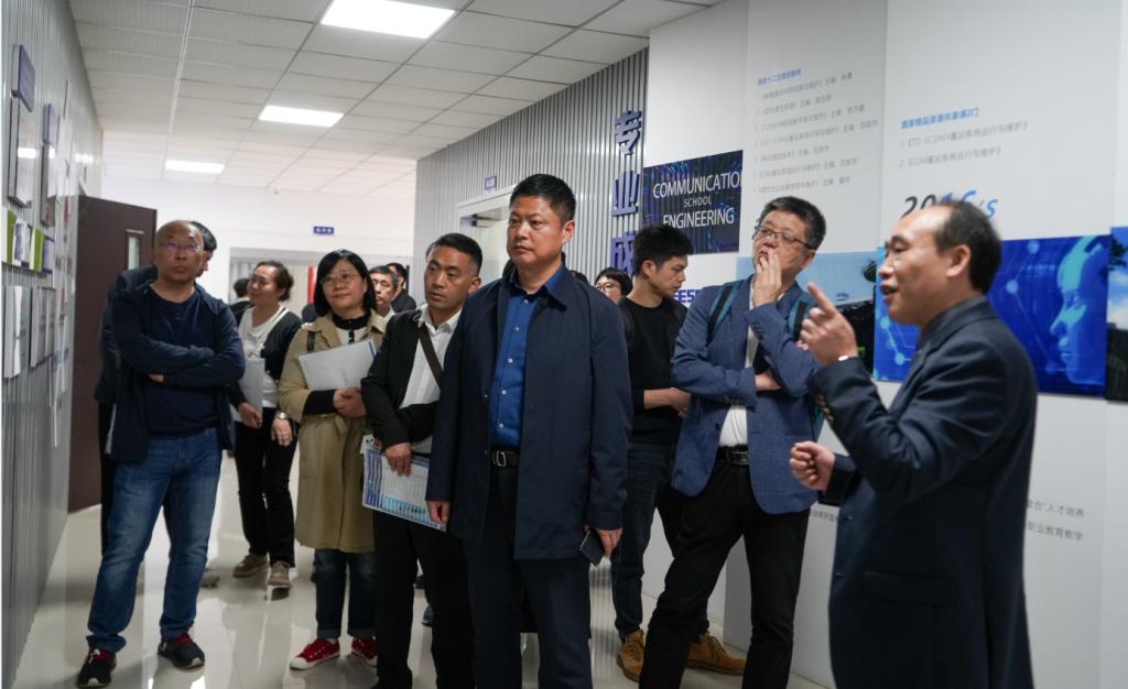 最后,与会成员前往新一代信息技术协同发展创新中心参观,与人工智能与大数据学院、通信工程学院、电子与物联网学院相关负责人深入交流实训室建设工作。