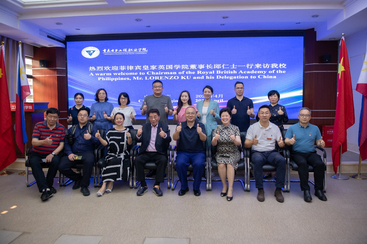 4月17日上午,在重庆教育国际交流协会协调下,菲律宾皇家英国学院董事长邱仁士一行来校交流访问。学校副校长幸昆仑,国际交流与合作发展处处长刘宏宇,智能制造与汽车学院党总支书记严世同,智能制造与汽车学院副院长王勇,以及学校各相关职能部门负责人及师生代表参加交流活动。