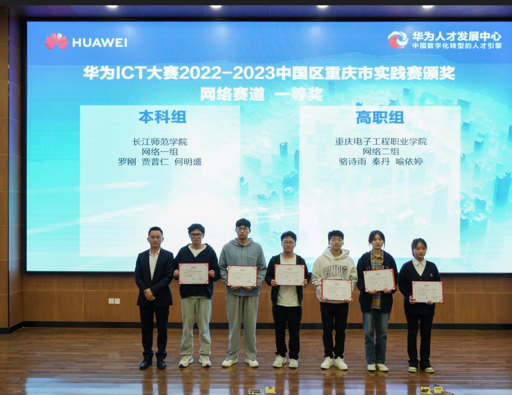 自2015年首届以来,华为ICT大赛已成功举办六届,覆盖全球85个国家和地区2000余所院校,累计参赛学生人数超过58万人,成为具有国际影响力的ICT领域竞技舞台和ICT人才交流平台。通信工程学院积极组织学生参加华为ICT大赛2022-2023中国区重庆市实践赛,在网络赛道、云赛道、计算赛道三个赛道俊取得优异成绩,共获得一等奖4项,二等奖6项,三等奖5项,其中获得一等奖的4支队伍作为重庆6支代表队成员参加全国总决赛。