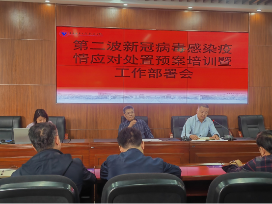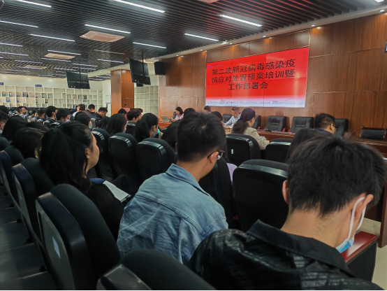 为做好第二波新冠病毒感染疫情的应对准备和处置工作,进一步提升我校疫情防控应急处置水平,有效应对可能出现的新一轮新冠病毒感染疫情和致病力增强变异株,根据市教委和沙坪坝区疫情防控指挥部统一部署及工作要求,4月27日上午,学校新冠病毒感染疫情防控工作领导小组组织开展了第二波新型冠状病毒感染疫情应对处置预案培训暨安全工作部署会议。