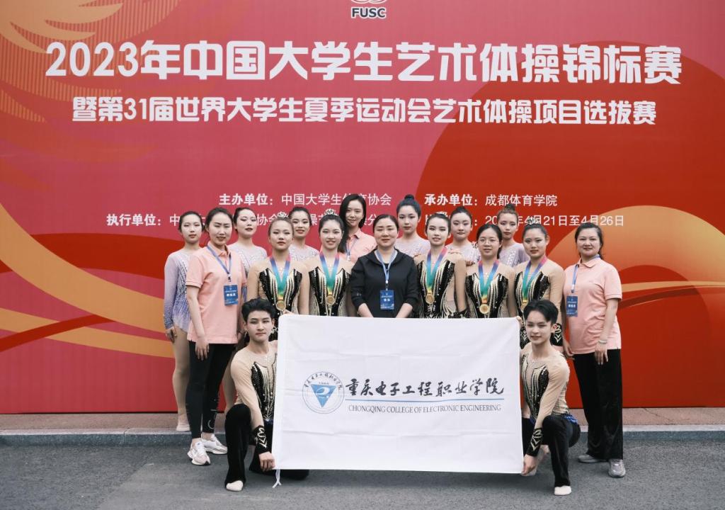 据悉,本次大赛由大学生体育协会主办,中国大学生体育协会健美操与艺术体操分会执行,在四川成都举行。赛事共吸引了全国30余所高校的近400名运动员、教练员参加。我校艺术体操代表队参加了集体五级棒、集体三纱巾、艺术集体操A套三项集体项目,均斩获冠军头衔。在本次艺术体操项目选拔赛中,我校艺术体操代表队力战群雄,荣获3枚金牌。
