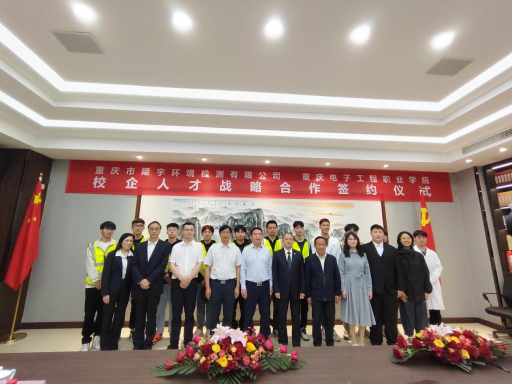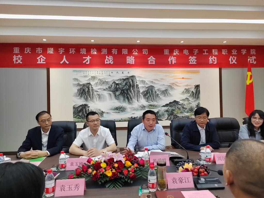 重庆市隆宇检测有限公司总经理袁豪江对我校师生的到来表示热烈欢迎。会上,袁豪江总经理为重庆电子工程职业学院领导及师生们介绍了重庆市隆宇检测有限公司的发展历程及主营业务。副校长黄爱明介绍了学校在深化产教融合、科教融汇、职普融通上做出的积极探索,以及与永川合作共建“产城职创”融合发展试验区,助力西部职教高地建设的美好愿景。双方均表示,未来将在专业建设、人才引进及技术研发等领域进一步增强合作,并于现场签署校企人才战略合作协议。