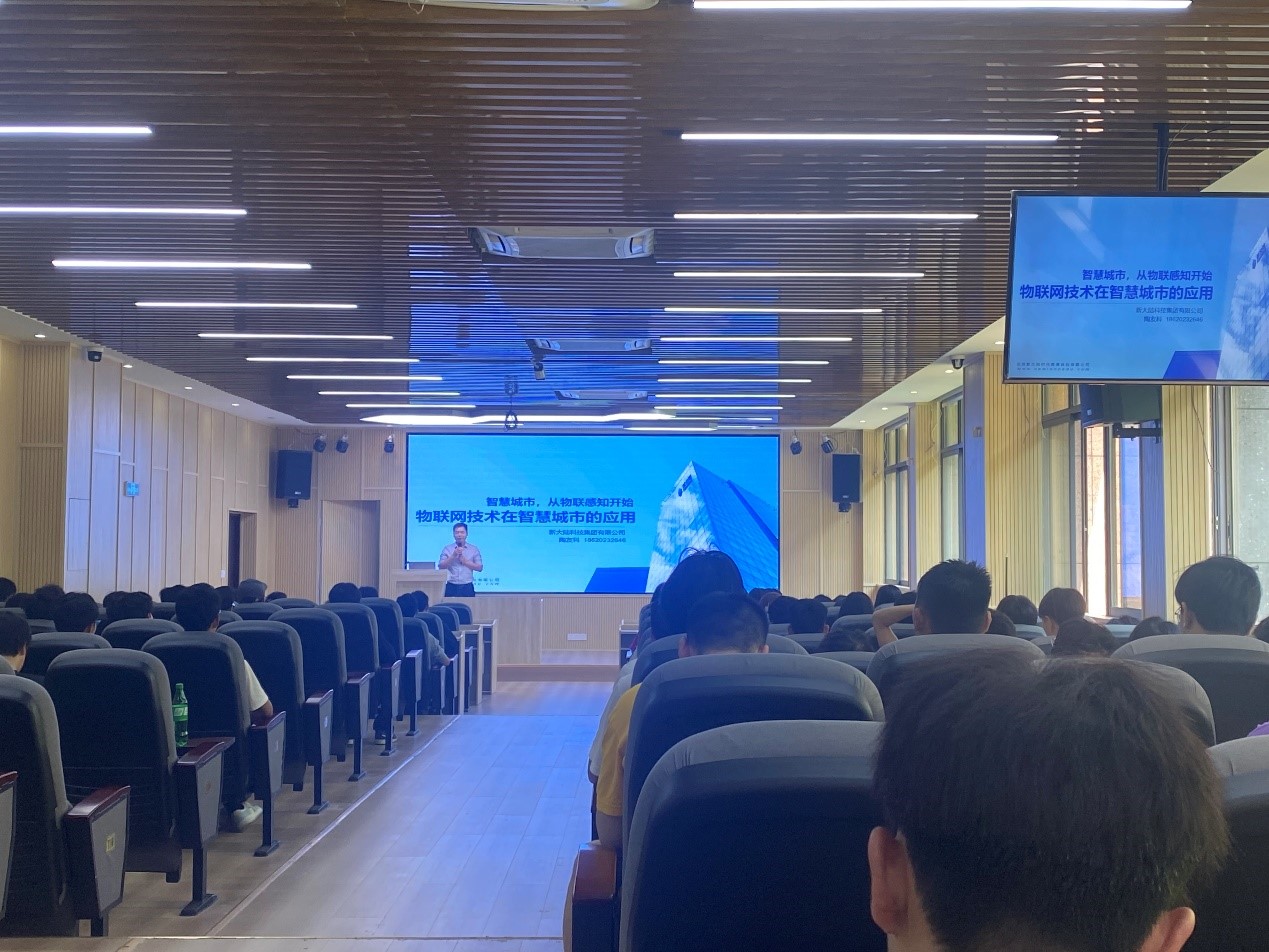 讲座围绕物联网时代、智慧城市的建设和典型场景和案例进行了分析。对全球和我国的物联网发展趋势进行了讲解和研判,阐述了驱动智慧城市建设的三大驱动力,同时讲解了许多典型的应用场景和具体的智慧城市案例。最后的交流互动环节,同学们踊跃提问,陶总监详细解答了大家的问题,现场气氛热烈且融洽。