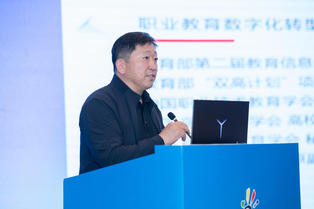 江苏省高等教育学会秘书长、南京信息工程大学原副校长邓志良的发言题目为《以数字化重塑职业教育新生态》,从数字化的时代要求、任务挑战、生态重塑、认识与体会等角度对职业教育数字化转型主题作了报告。