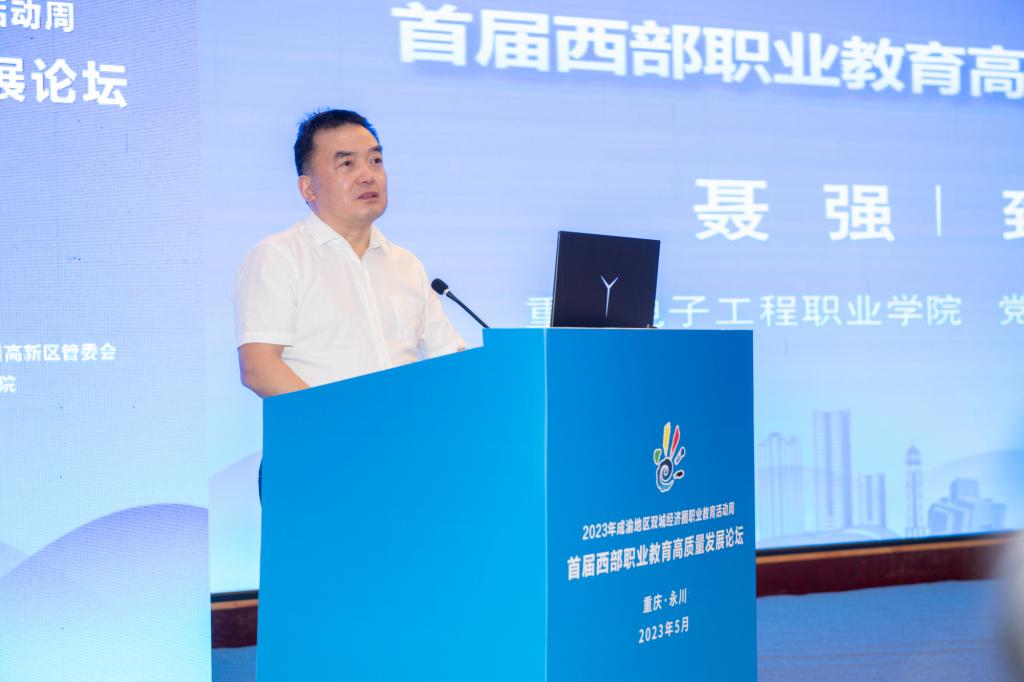 重庆电子工程职业学院校长聂强在致辞中表示,借助此次的论坛进一步凝聚共识,为西部职业教育发展提供丰富的实践借鉴,为西部职业教育交流互促搭建新平台。