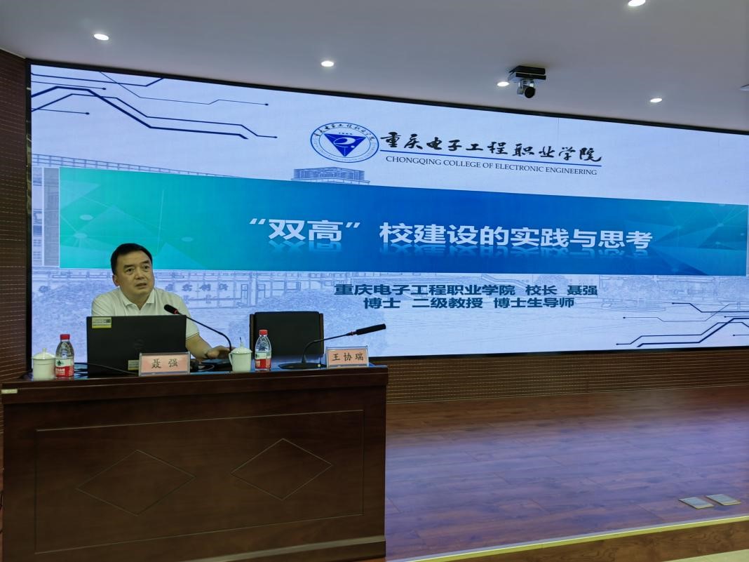 聂校长以习近平总书记对职业教育工作作出的重要指示开篇,结合“双高计划”十大改革发展任务,围绕专业集群,培育产业高端人才、科技创新,服务智能产业升级、深化治理,激发办学新活力三个方面展开,详细阐述了重庆电子工程职业学院在专业群建设、科研创新、内部治理等方面的重点举措和典型经验。