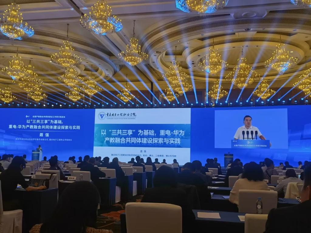 作为职业院校领导嘉宾,聂强校长受邀作主旨报告,主题是“‘三共三享’为基础,重电-华为产教融合共同体建设探索与实践”。聂校长从重电-华为产教融合共同体建设的实施背景、主要做法、特色与创新、实施效果、交流与推广等几个角度进行了全面详实、深入浅出的讲解。报告内容引起1000余名在座与会者的强烈共鸣,充分发挥了职教集团(联盟)产教融合的示范培训作用。