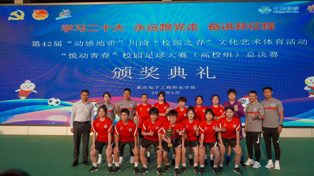 2023年5月23日下午,历时15天的第42届“动感地带”川渝“校园之春”文化艺术体育活动之“悦动青春”校园足球大赛在重庆电子工程职业学院落下帷幕,我校女子足球代表队由体育与国防教学部老师蒋艺、韦泽泽带队参赛,经过5场激烈的淘汰赛,女子足球代表队夺得本次比赛冠军。