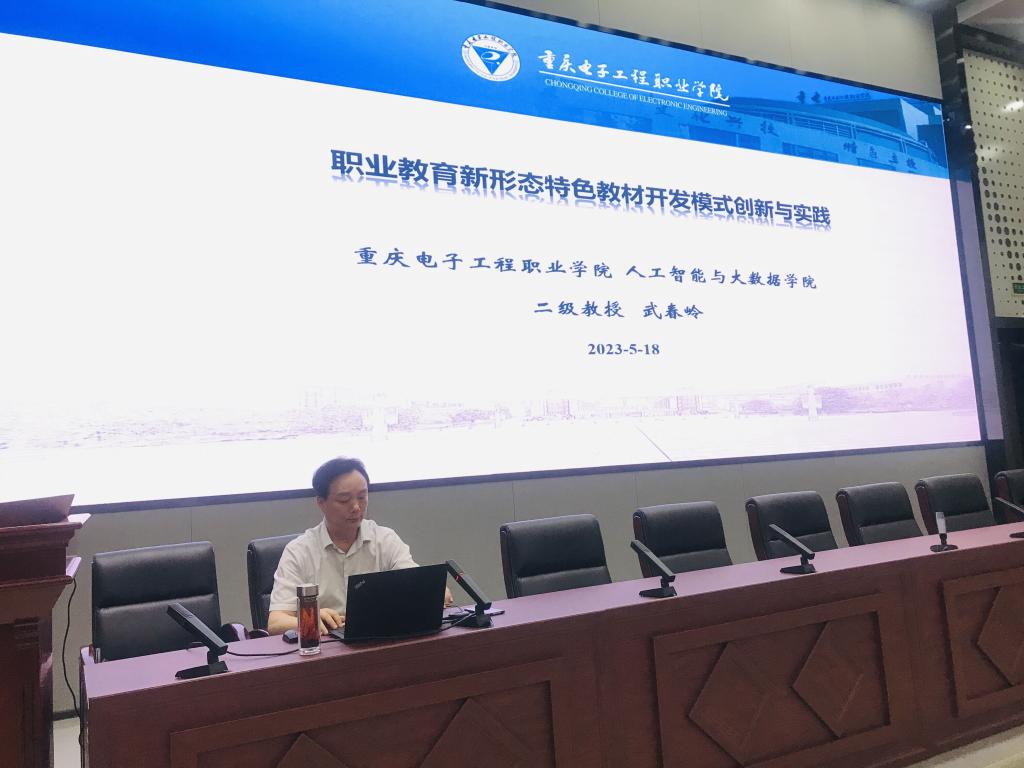 本次培训由教务处教学保障科负责人陈学昌主持。教务处邀请国家级课程思政教学名师和教学团队负责人、电子与物联网学院彭华教授做了题为《国家级课程政策解读》的报告;全国优秀教材一等奖和全国教材建设先进个人获得者,国家级职业教育教学创新团队带头人、享受国务院特殊津贴专家,国家“万人计划”教学名师,人工智能与大数据学院院长武春岭教授做了题为《职业教育新形态特色教材开发模式创新与实践解读》的报告。