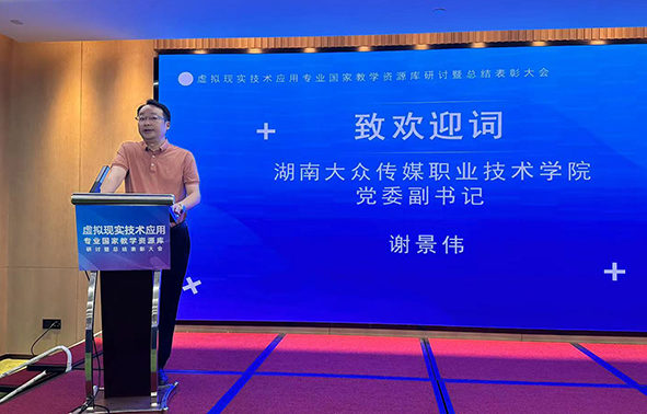 本次会议分表彰大会、主题讲座和企业参访三个部分。承办单位湖南大众传媒职业技术学院党委副书记谢景伟出席会议并致词,我校数字媒体学院院长刘晓东代表项目组做了资源库建设总结报。