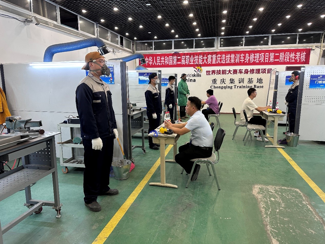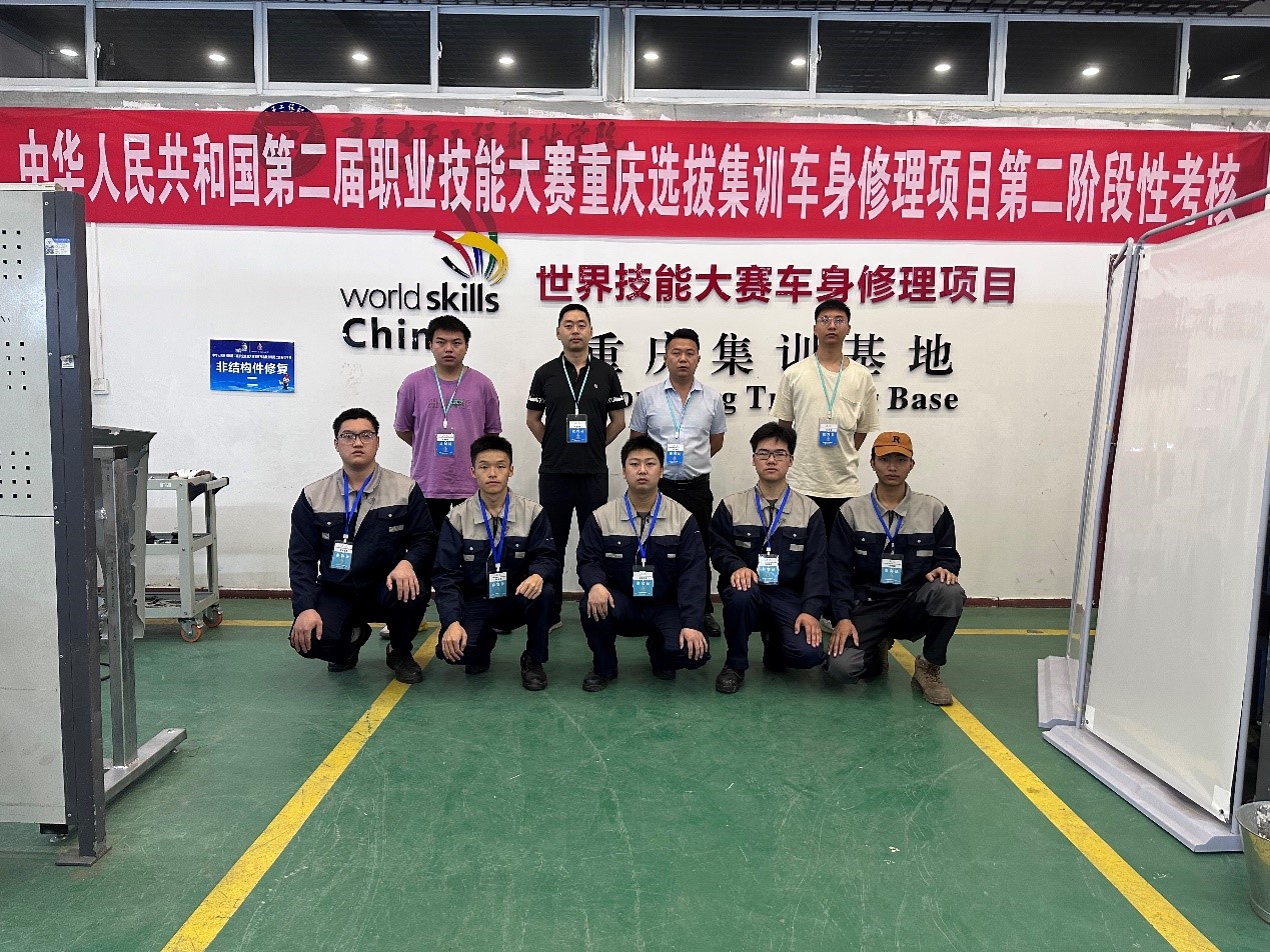 2023年6月13日至14日,中华人民共和国第二届职业技能大赛重庆市选拔集训车身修理项目第二阶段考核在我校车身修理竞赛集训基地举行。