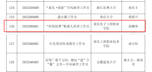 近日,经资格审核、专家评审等程序,中国科学技术协会公布了《2023年学风传承行动立项名单》,智慧健康学院赵鹏举教授申报的“‘科创筑梦’机器人科普工作室”新增为中国科协2023学风涵养工作室项目,工作室编号2023500491。