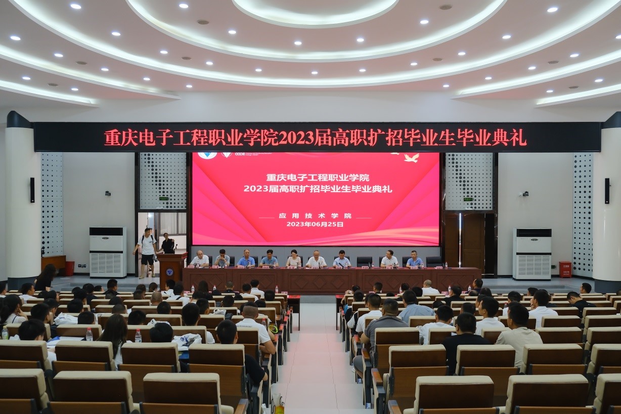 2023年6月25日上午,我校2023届高职扩招毕业生毕业典礼在博远厅举行。参加典礼的有副校长幸昆仑,相关职能部门负责人,应用技术学院(培训与继续教育学院)、相关实体二级学院负责人,相关辅导员,各校外学区负责人,以及2023届高职扩招毕业生代表。典礼由应用技术学院(培训与继续教育学院)副院长李晓斌主持。